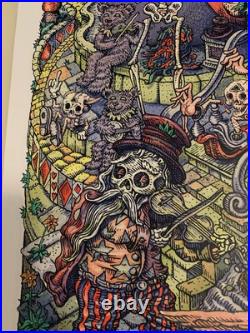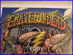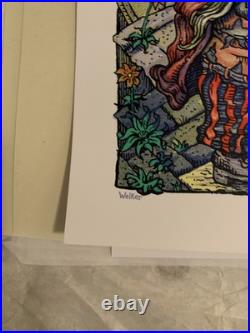 The product is a limited edition 8 color screen print by artist David Welker featuring the iconic Grateful Dead. This metallic ink variant measures 18x24 inches and is numbered out of 175. Inspired by the rock and pop music genre, this piece of entertainment memorabilia captures the essence of the legendary band and is a must-have for any music enthusiast or Grateful Dead fan.