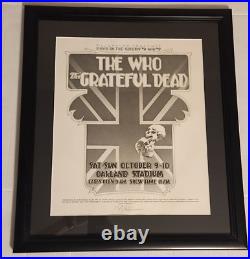 Grateful Dead - The Who - Day On The Green BGP Poster - Oakland - Framed Signed. Great condition, this is framed but the poster looks mint and clean. Framed this is approximately 21 x 24. This listing comes from the Lone Star Dead Radio estate, of Eric Schwartz. It is something of his.