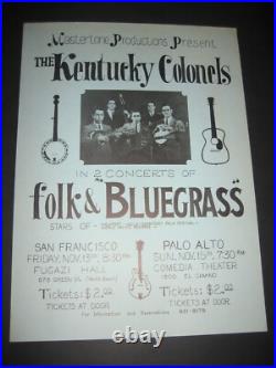 1964 first and only printing for the Kentucky Colonels in 2 shows in the Bay Area. Jerry Garcia introduced the group at the Palo Alto show as heard on CD. Has some age, presents real nice with NO flaws.