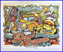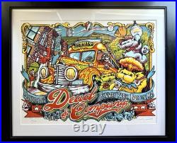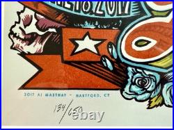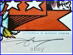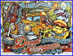 Limited edition 9-color linoleum block print by AJ Masthay, created for Dead & Company's June 18, 2017 show at Fenway Park, Boston. Print Size: 18" x 24". Matted Size: 20" x 24". Condition: Excellent - mounted with transparent, acid-free photo corners (no glue or tape), secured to a backing board A beautifully preserved piece of concert art-ready to frame or display. Note: Frame shown in photos is for display only and not included.